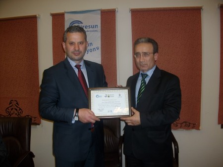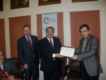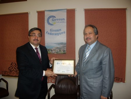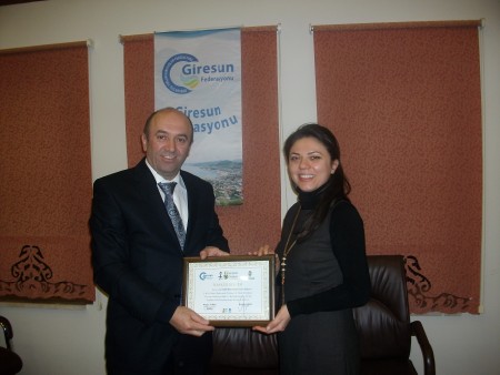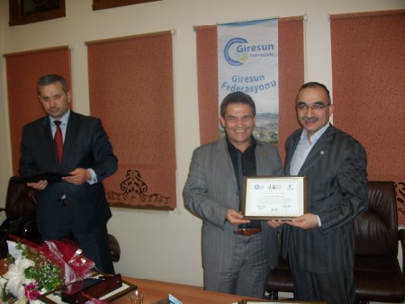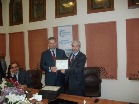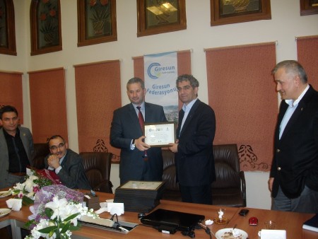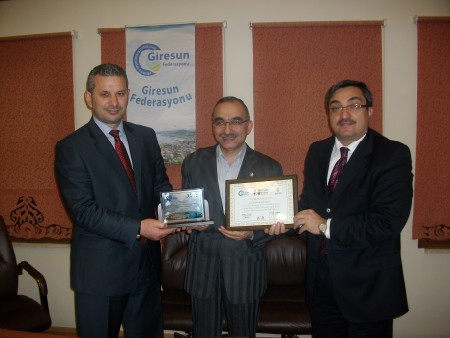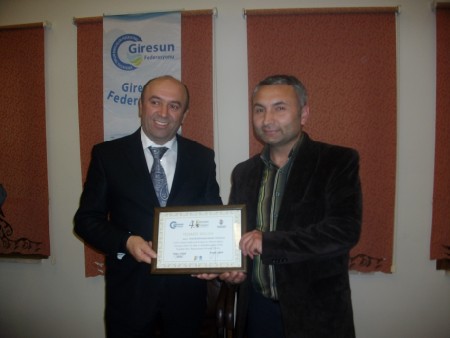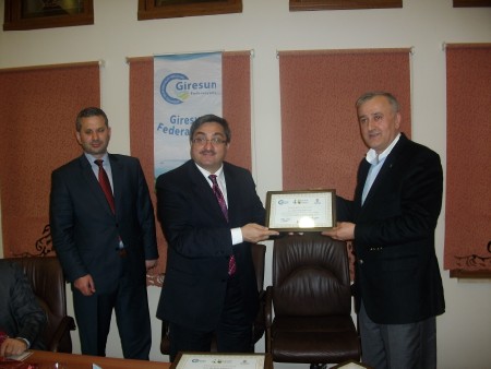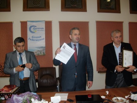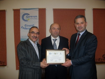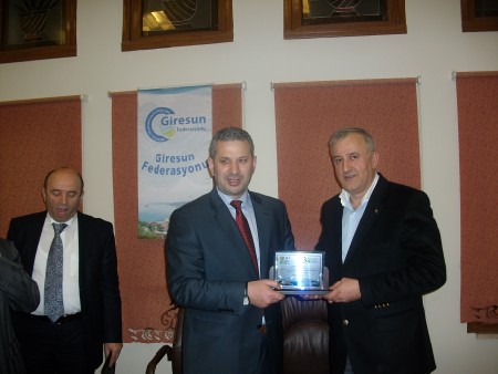 Giresun Federasyonu Başkanı Hasan Turan tüm yönetime manevi değeri oldukça yüksek plaket ve teşekkür belgeleri verdi.Halil Kütük'e teşekkür belgesi ve plaketini Veysel Ekmen ile beraber takdim etti.